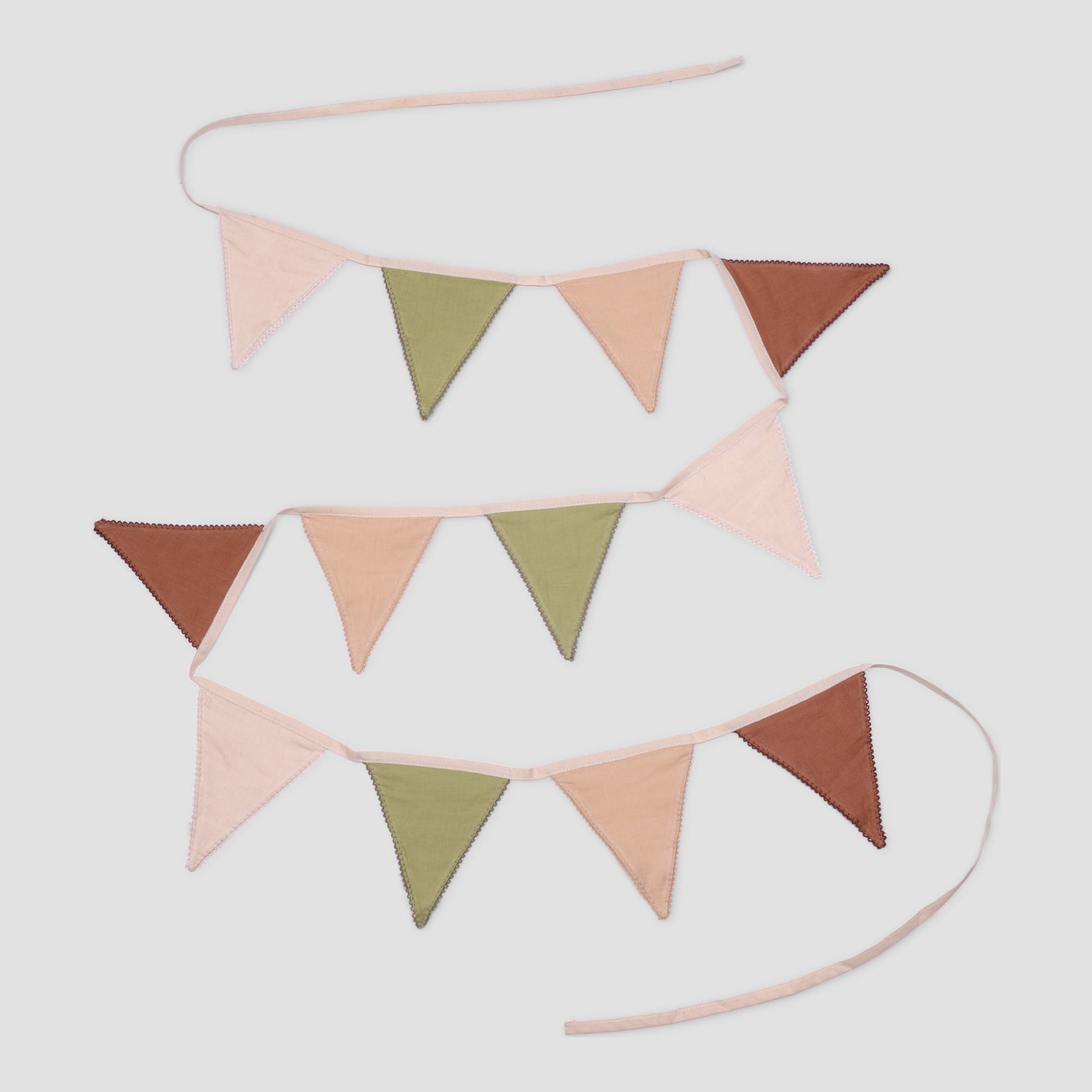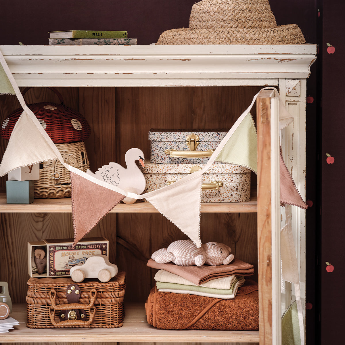 Our Cotton Gauze Bunting is the perfect finishing touch for your little one’s nursery or bedroom. With four alternating colourways (Chestnut, Chalk, Sweatpea and Buttercup), each pennant is finished with a scalloped lace edging and features an embroidered woodland motif.