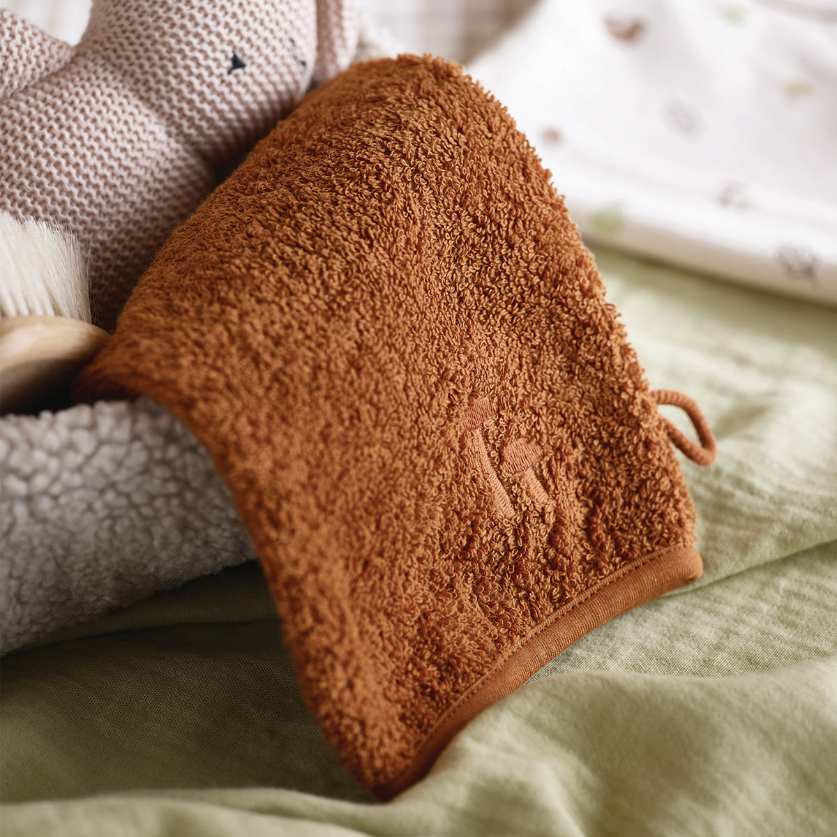 Add a little touch of playfulness to bath time with our Cotton woodland animal bath mitt. Woven from 100% cotton, it’s gentle on your little one’s sensitive skin and features adorable floppy bunny ears. Our kids’ bath mitts and matching hooded towels come in four beautiful hues, pictured here in Chestnut, each with an embroidered woodland motif in the corner.