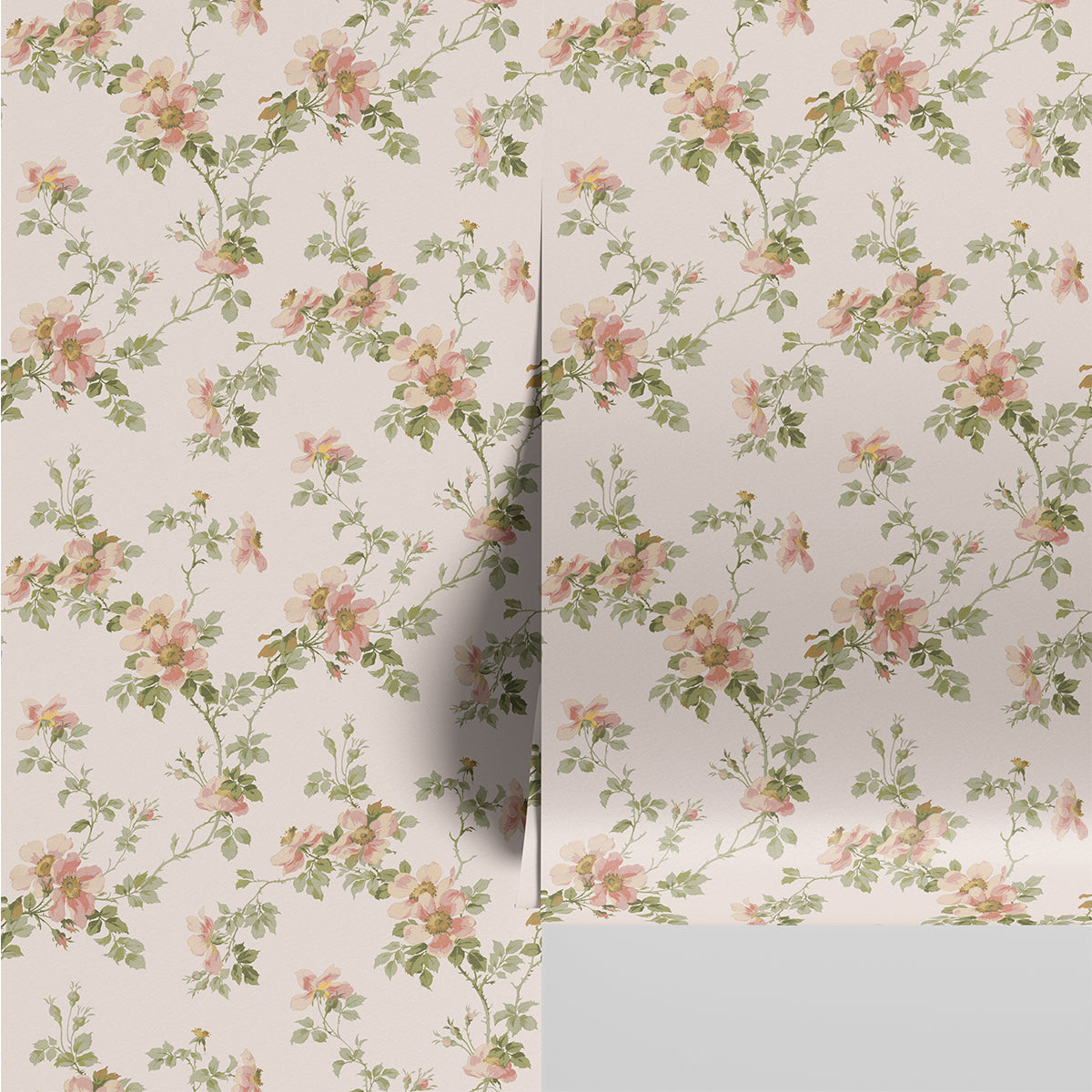 Featuring the romantic native flower of its namesake, this whimsical Field Rose wallpaper brings vintage-inspired style to the modern home. Our non-woven wallpaper is easy to apply and incredibly hardwearing, with a thick feel and textile-like appearance.