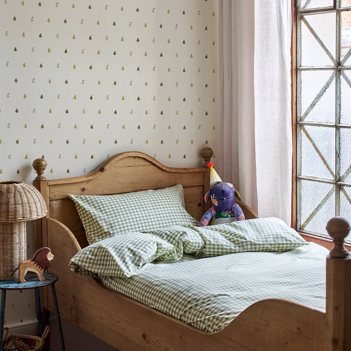 With a hand-painted pattern created by our in-house design team, this illustrated Pears wallpaper brings a sense of fun and adventure to playful spaces. Our non-woven wallpaper is easy to apply and incredibly hardwearing, with a thick feel and textile-like appearance.