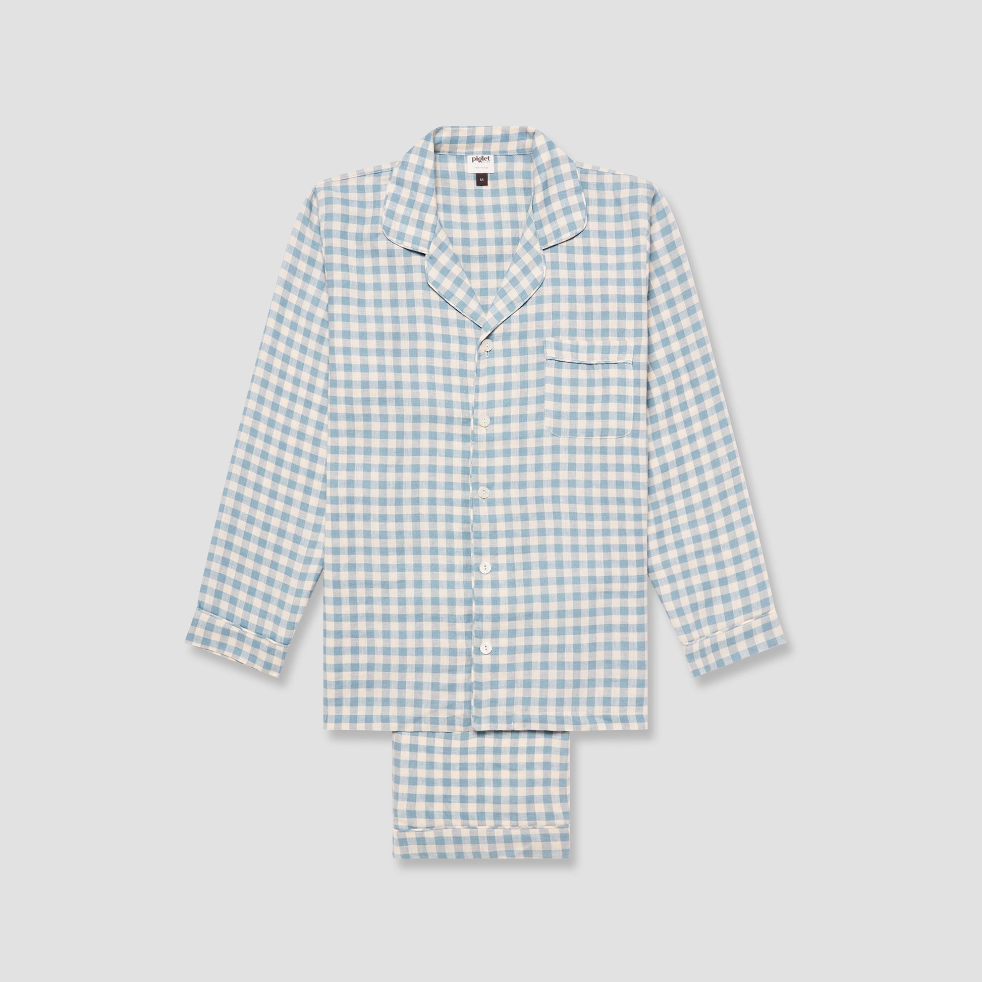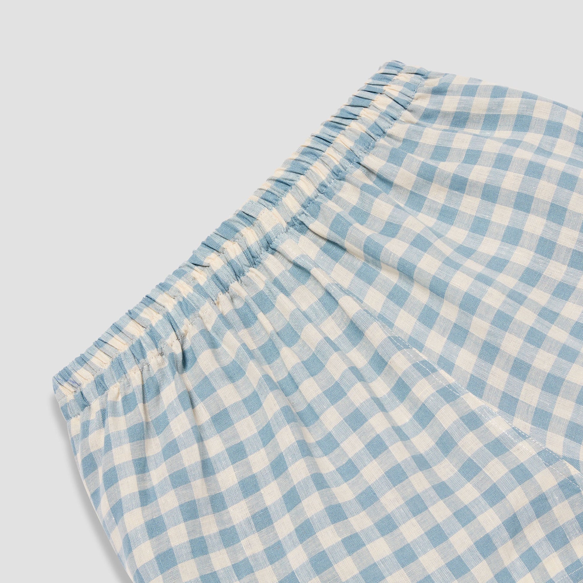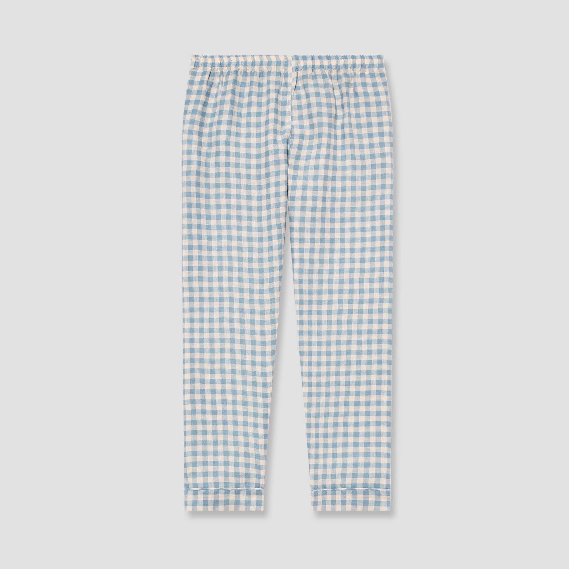 Men's Warm Blue Gingham Linen Pyjama Trouser Set