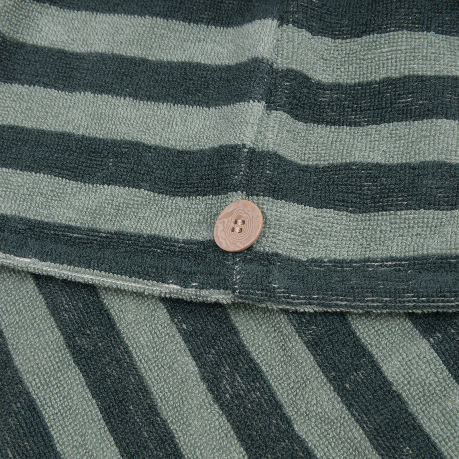Our Pine Green Pembroke Stripe Cotton Hair Towel is a haircare must-have for your post-shower routine. The super soft and absorbent fabric will soak up excess moisture to cut down on drying time, and it’s perfect for keeping your pillow clean when indulging in an overnight hair mask. Our hair towels feature a handy elasticated loop and corozo button for easy fastening.