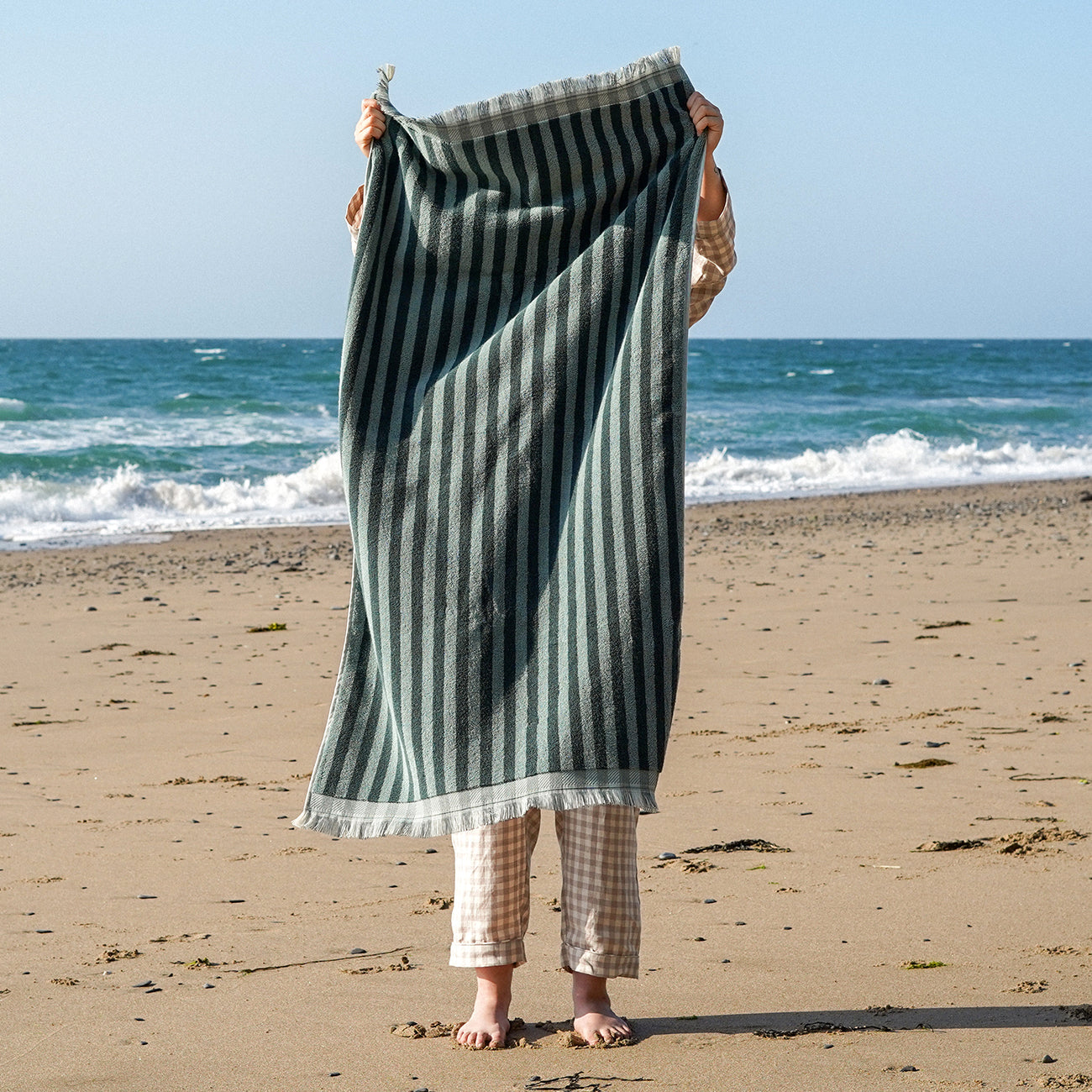 Add a minty-green, coastal touch to your bathroom with our Pine Green Pembroke Stripe cotton towels. Made from sustainably sourced zero-twist cotton, these deck chair-inspired cotton towels weigh 600 gsm, making them long-lasting but super soft.