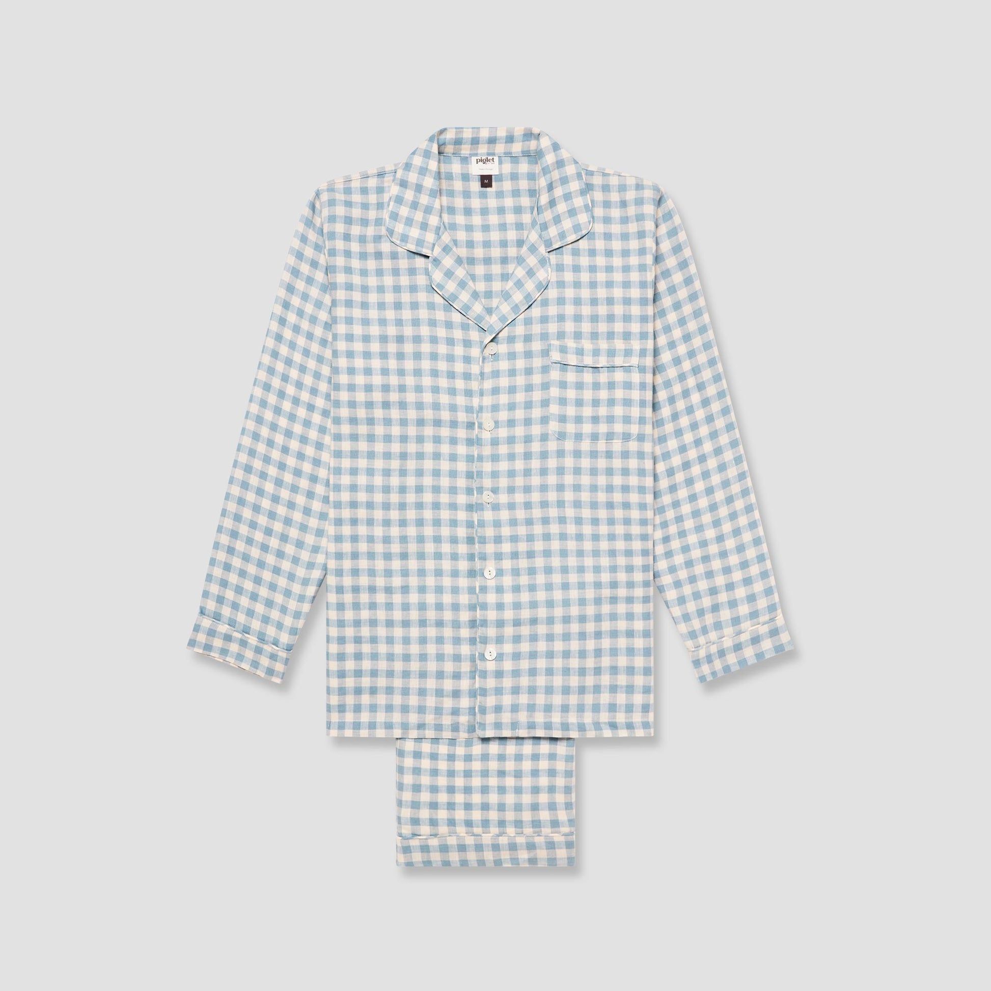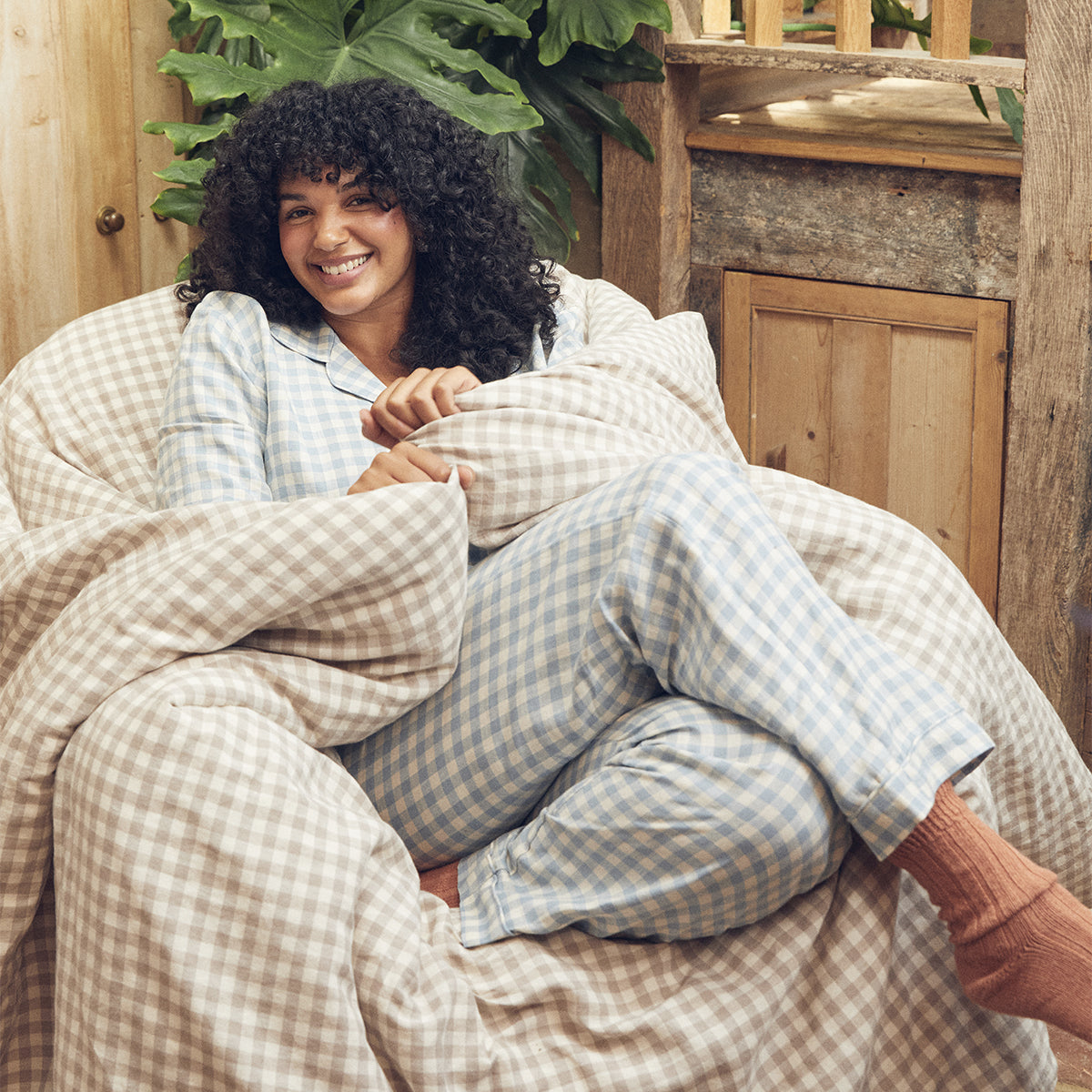 Warm Blue Gingham Linen Pyjama Trouser Set
